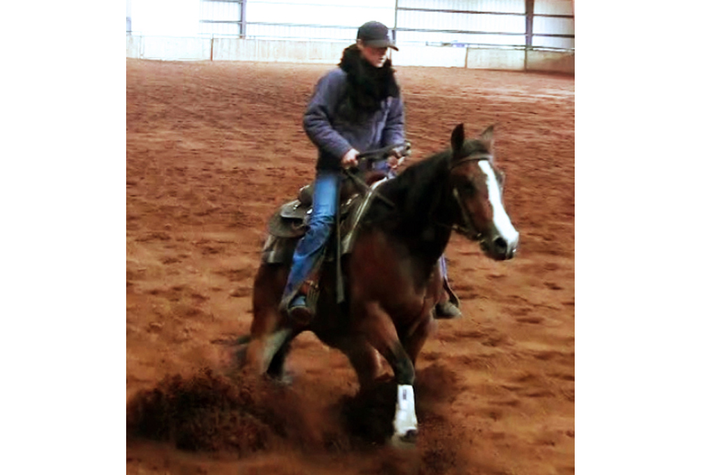 Teaching the Von Reminic 2 year old filly to do a sliding stop